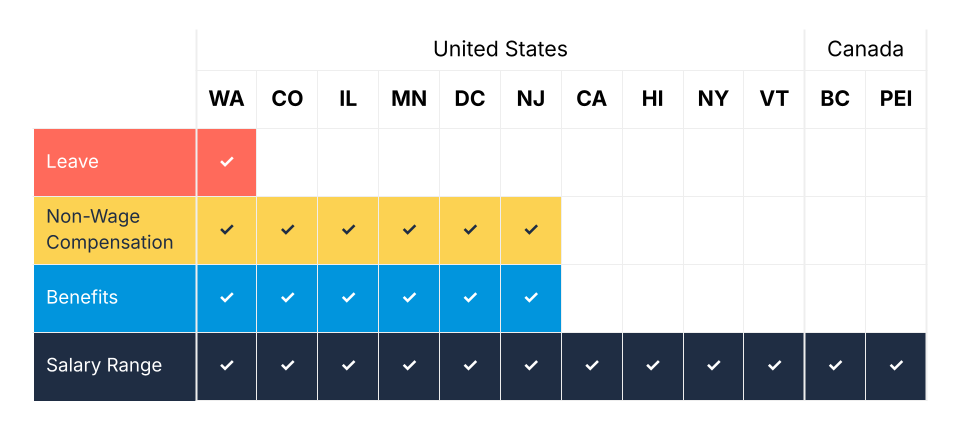 - More detailed disclosure requirements: Several jurisdictions, like Washington State, now require job posts to disclose not just base salary but also benefits like health care, paid time off, and any bonuses or equity