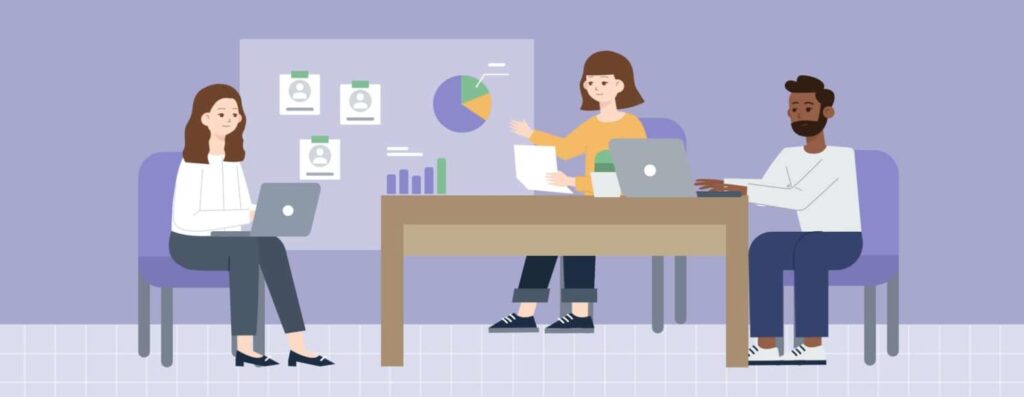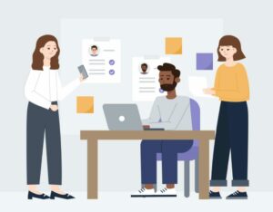 Digital rendering of a hiring team in the recruiting process.